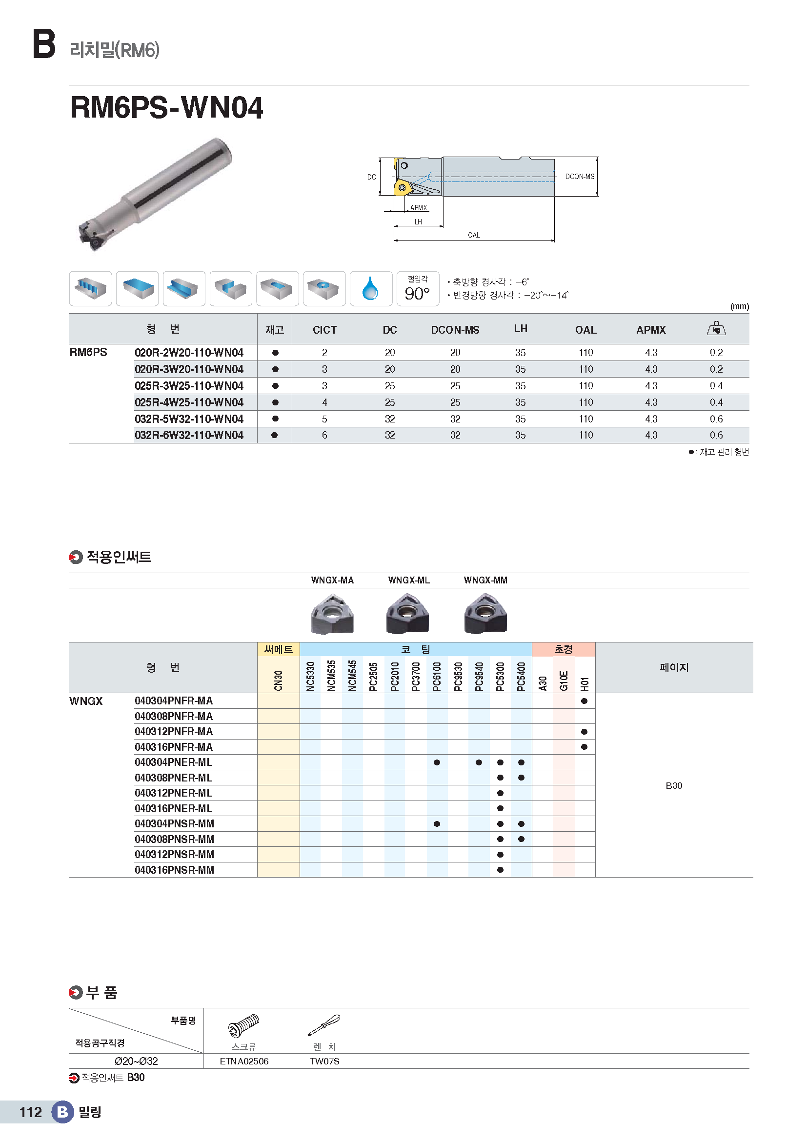 90°엔드밀 커터(6코너) RM6PS..-WN../ KR