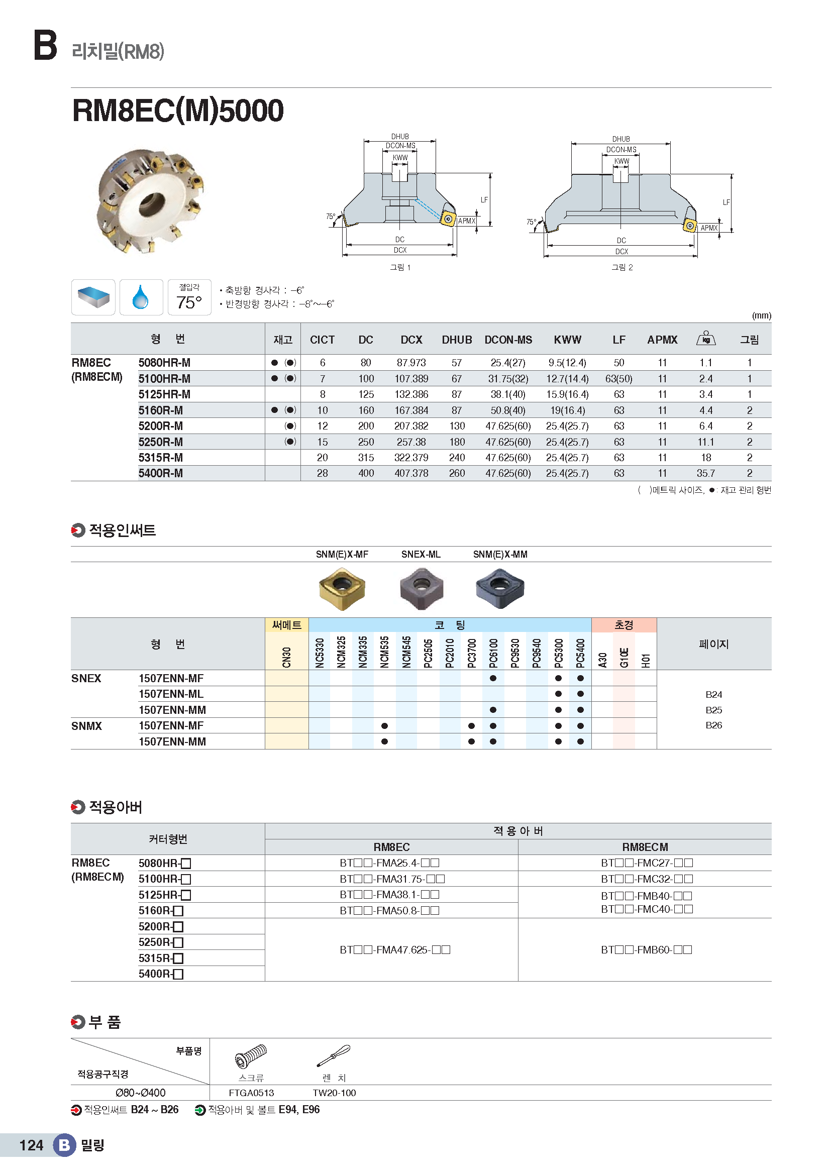 75°페이스밀 커터(8코너) RM8EC□5../ KR
