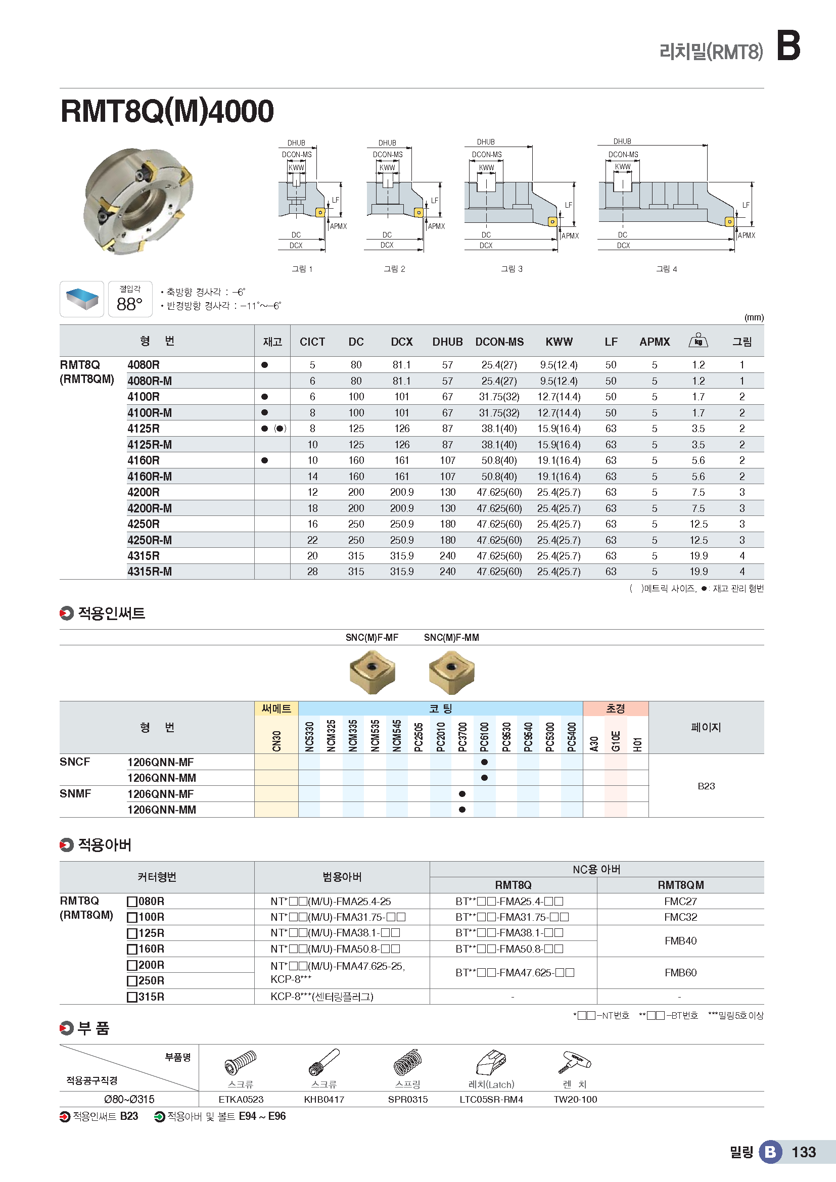 • 상품명 리치밀 88°페이스밀 커터/ SN□F1206QNN..