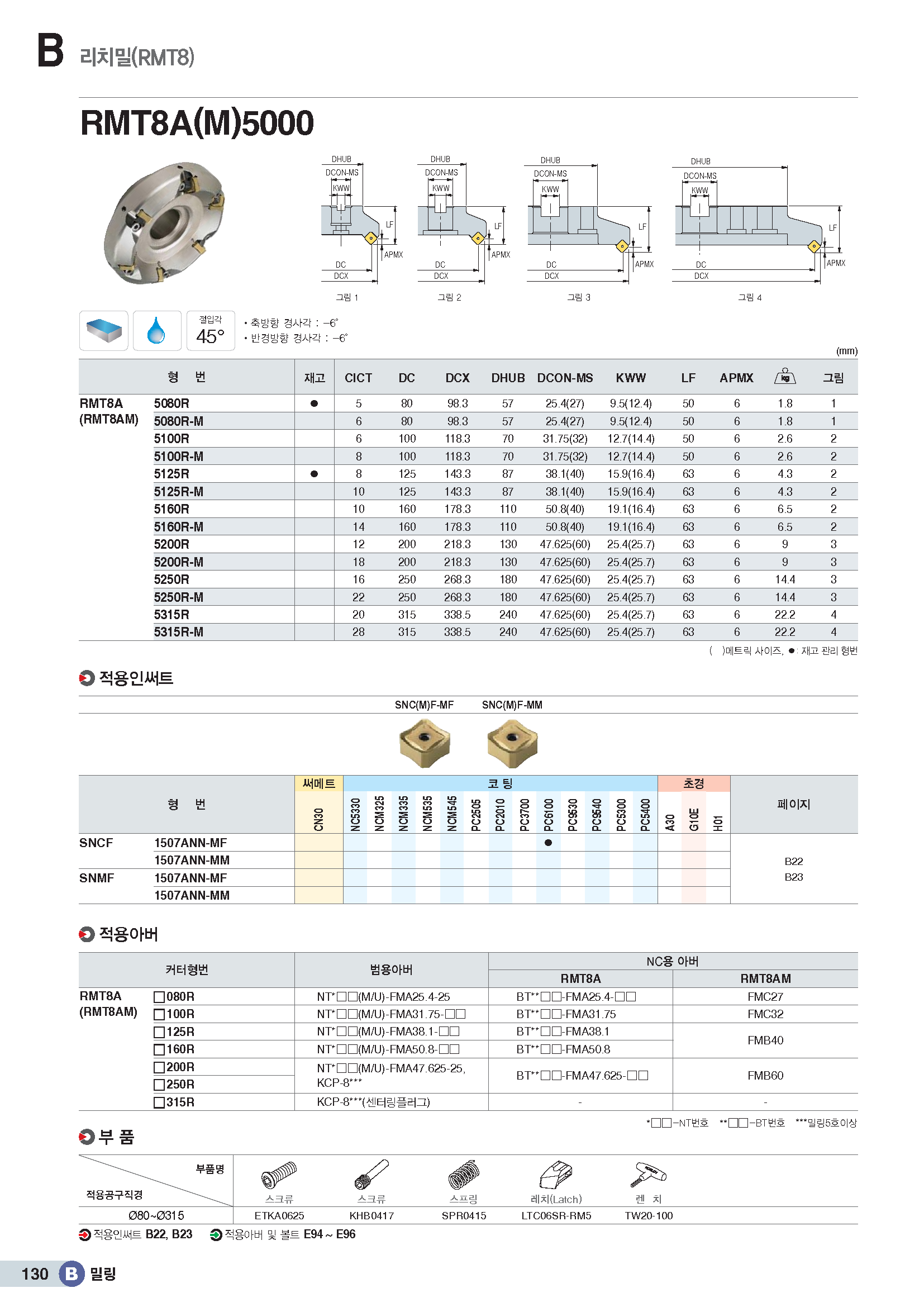 45°커터 인써트(8코너) SN□F..ANN../ KR