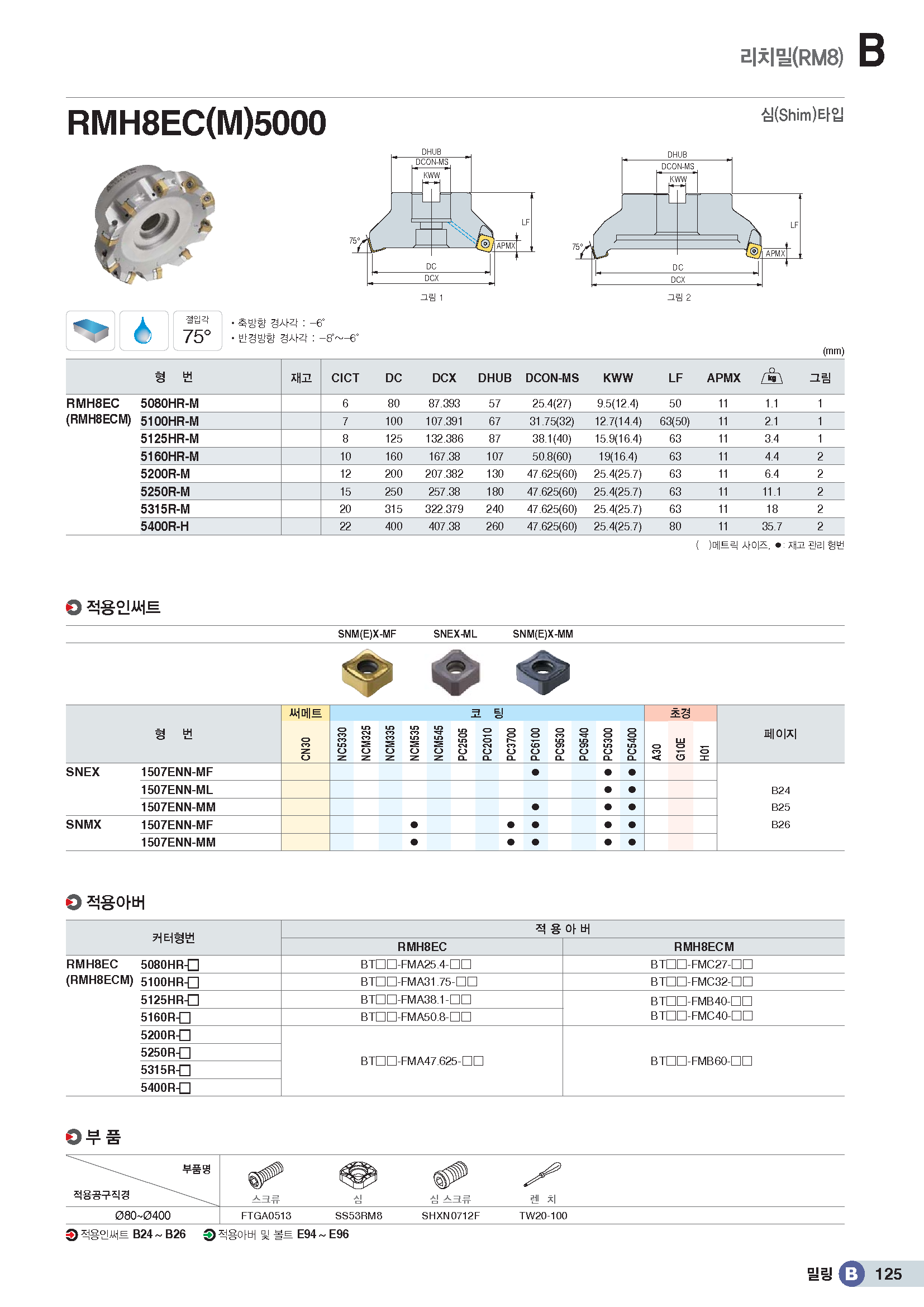 • 상품명 리치밀 75°커터 인써트(8코너)/ RM□8EC□5../범용