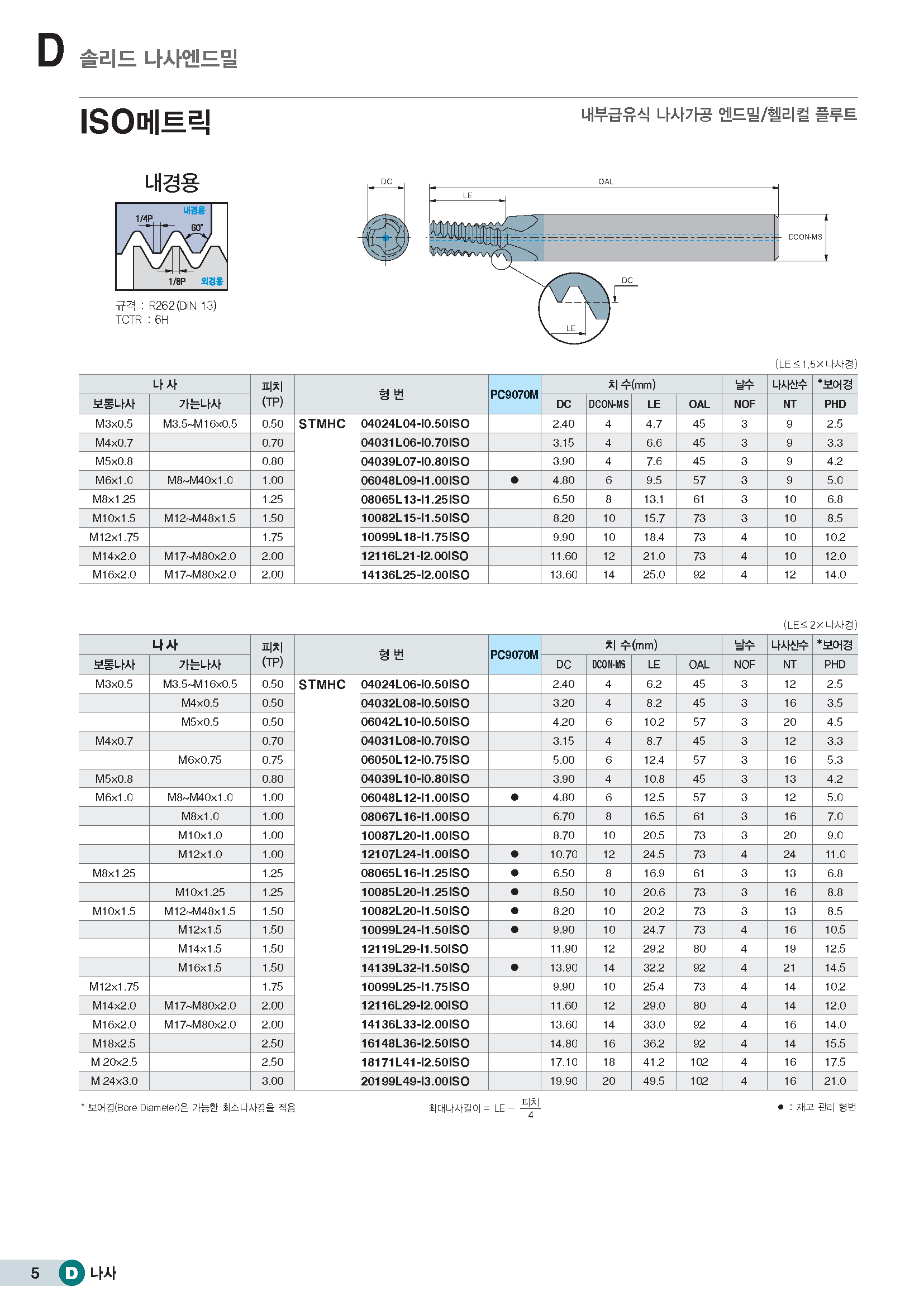 밀링 내경 나사 엔드밀(헬리컬,O-H) /범용 |