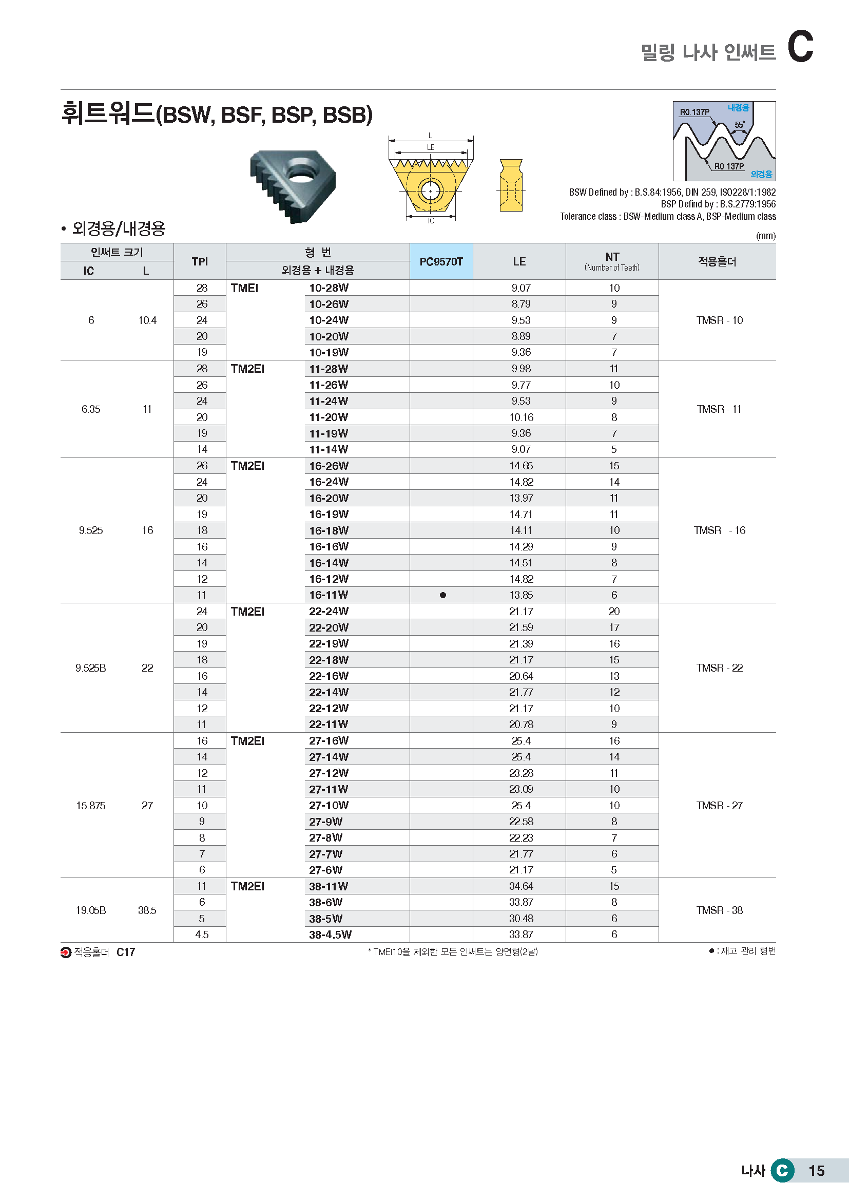 • 상품명 밀링 내&외경 나사 인써트/ TMS../범용