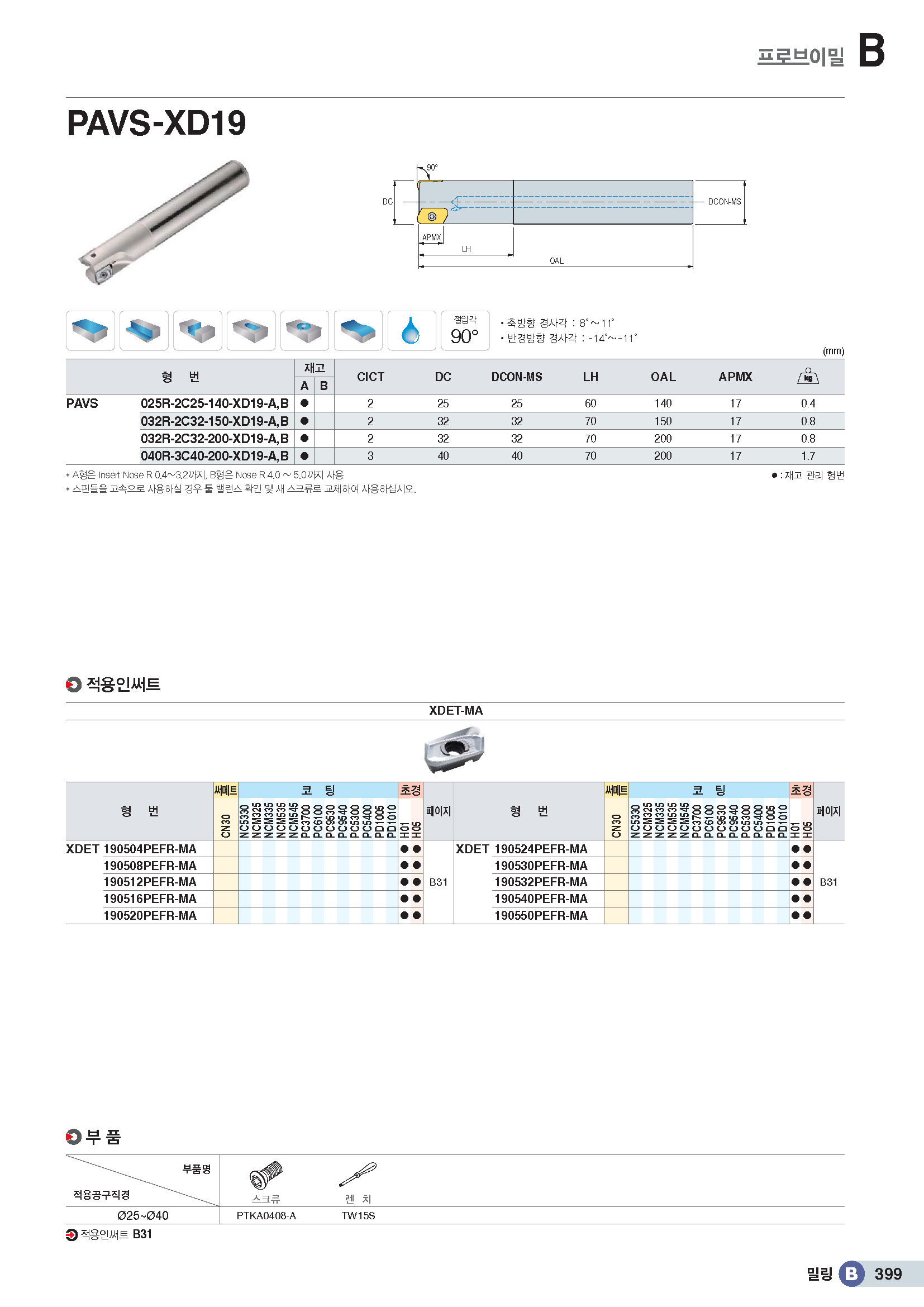 • 상품명 프로-V밀 90°커터 인써트/ PAVC&S..-XD19 /비철용