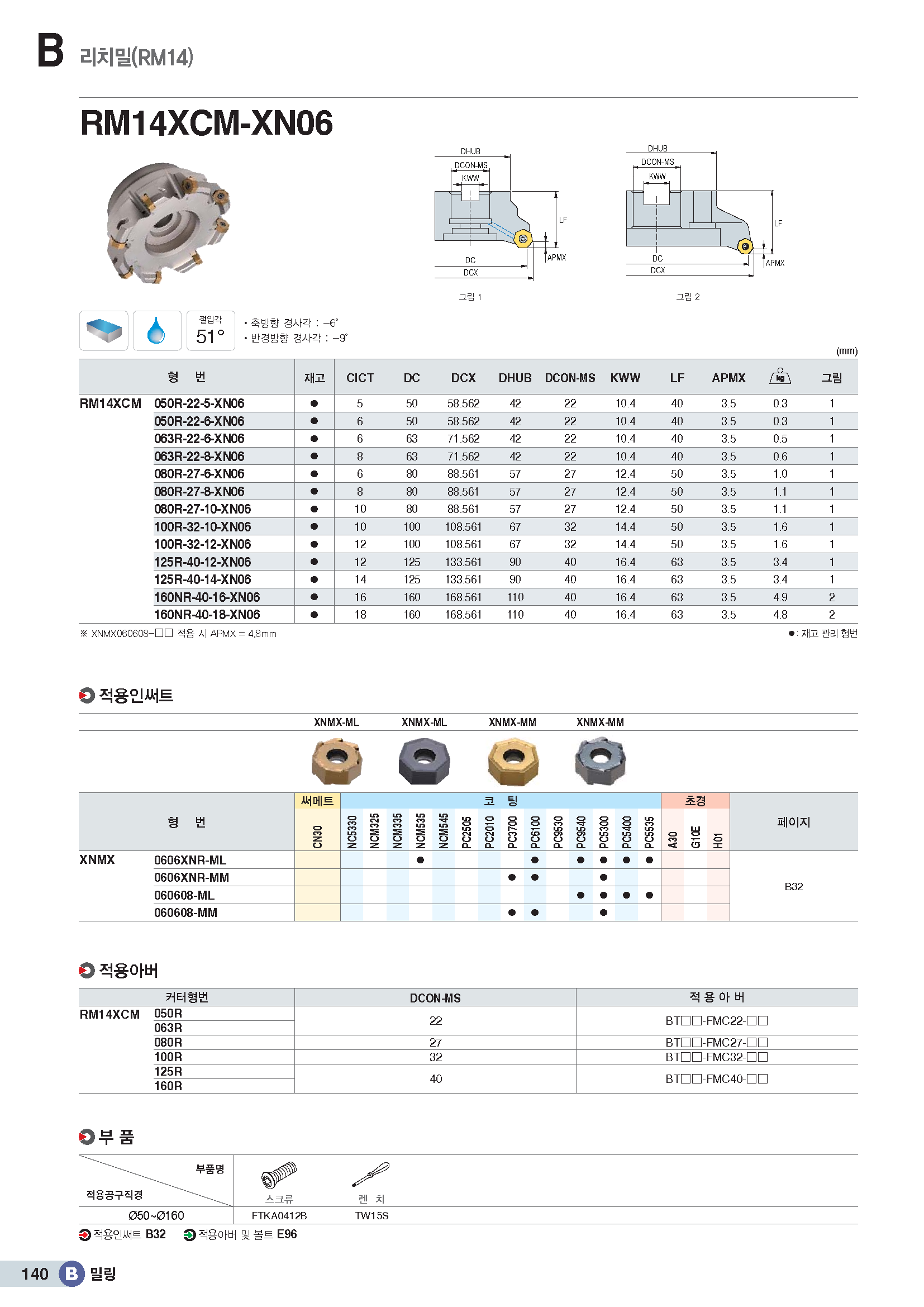 • 상품명 리치밀 51°커터 인써트(14코너)/ RM14XC..-XN06 /범용