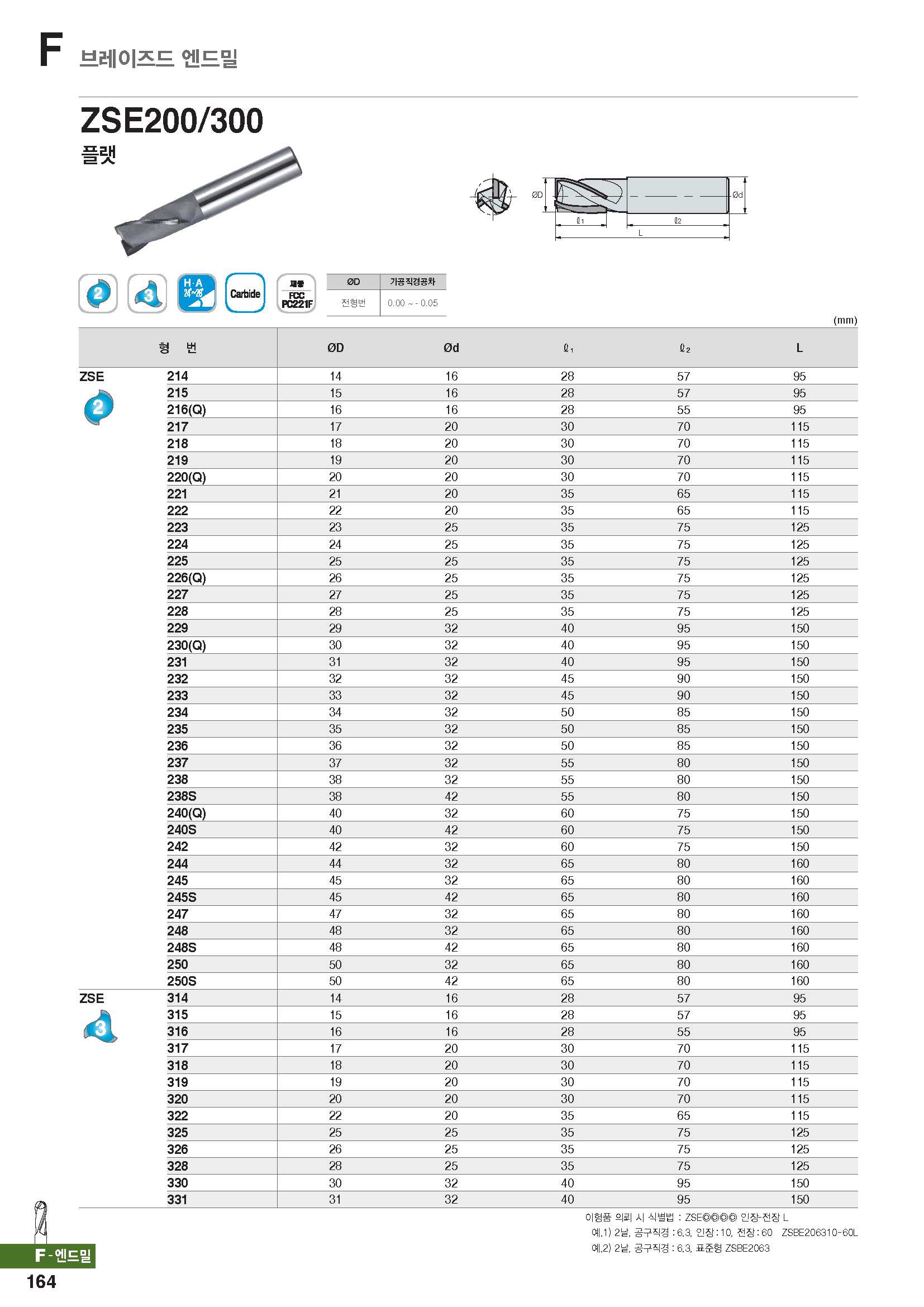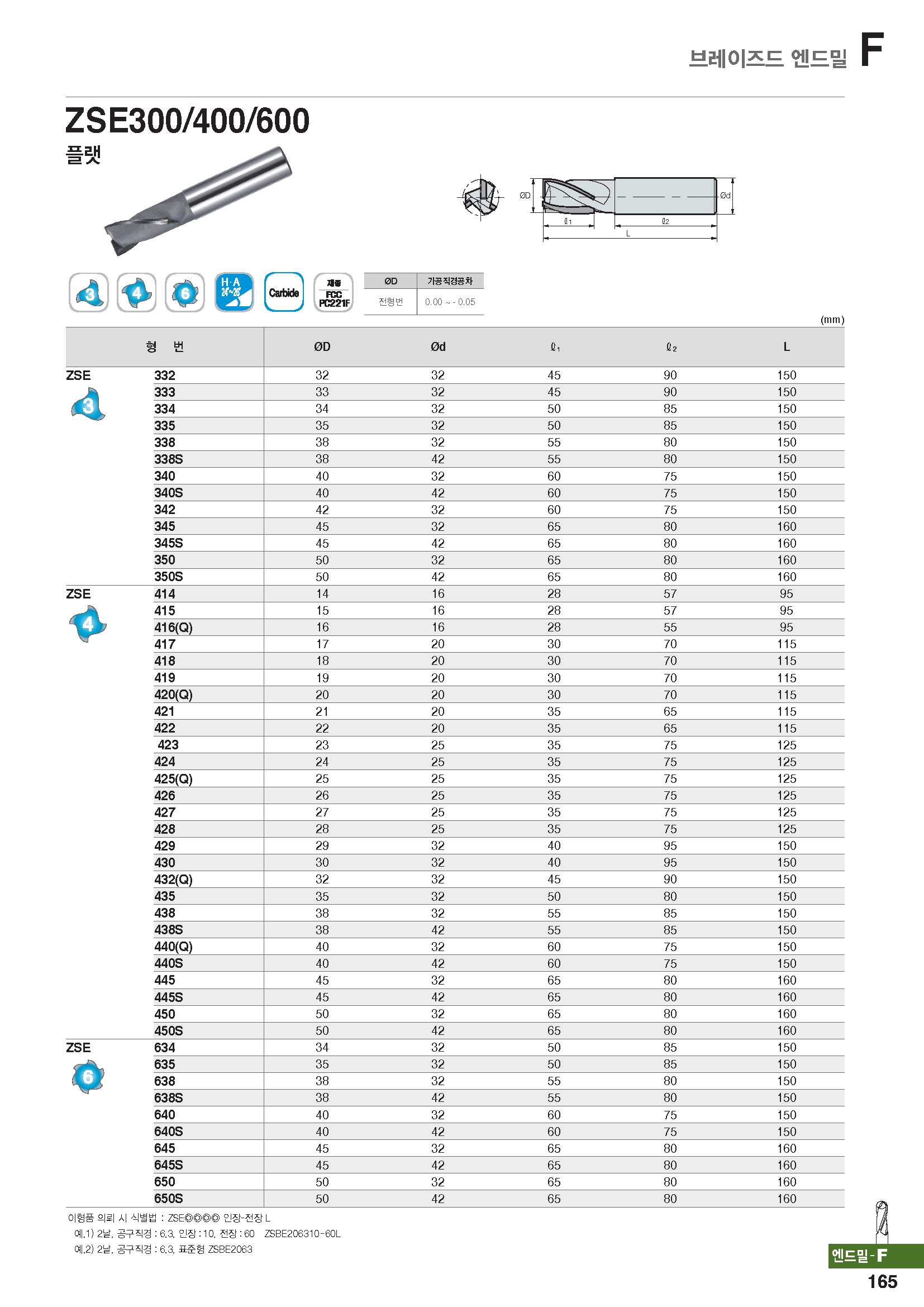날-초경 2~6날 엔드밀 ZSE2~6../ KR