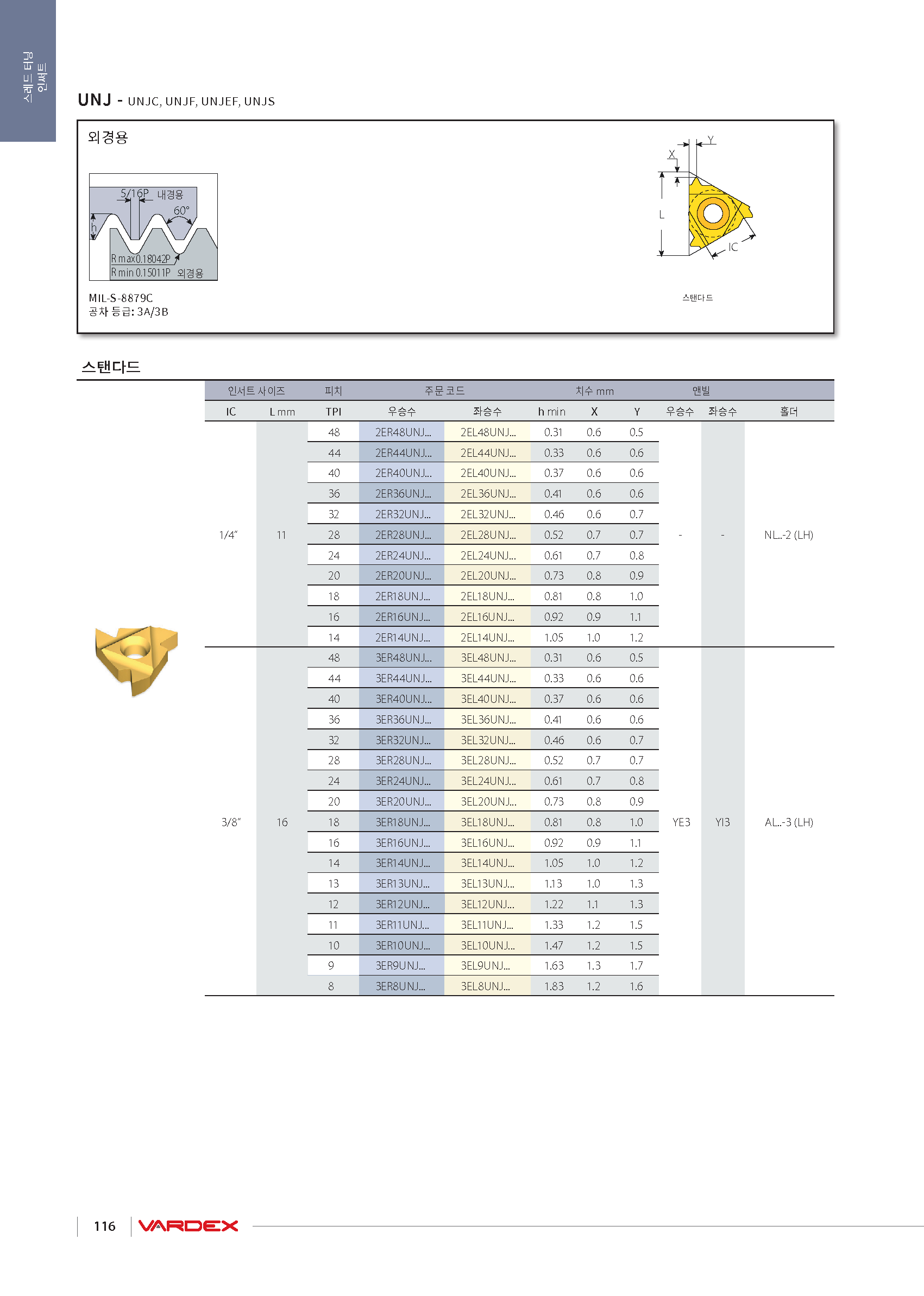 터닝 외경 나사 인써트 UNJ/ 범용/ VD