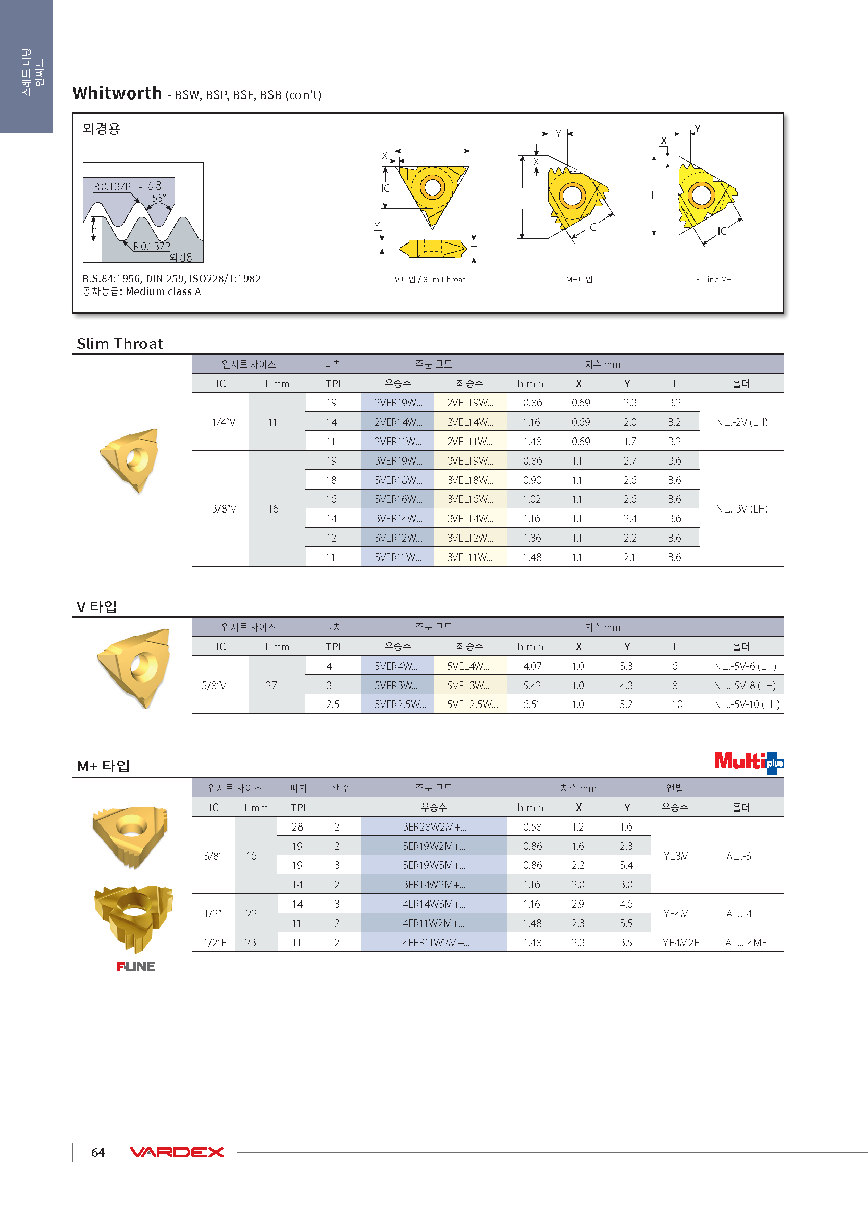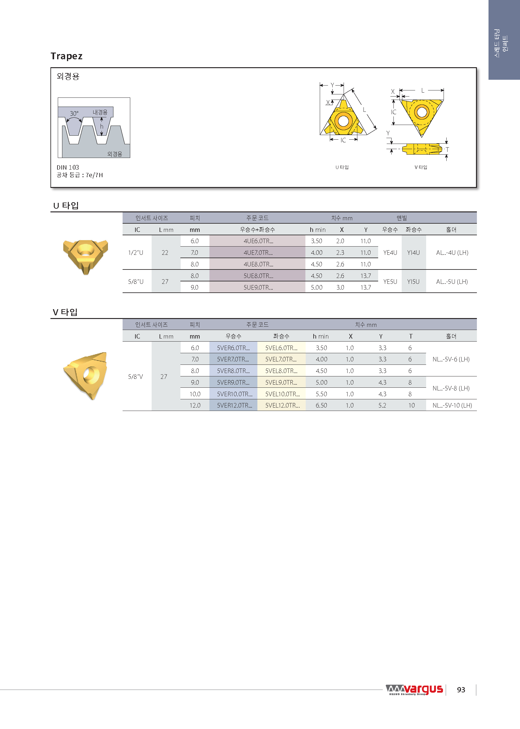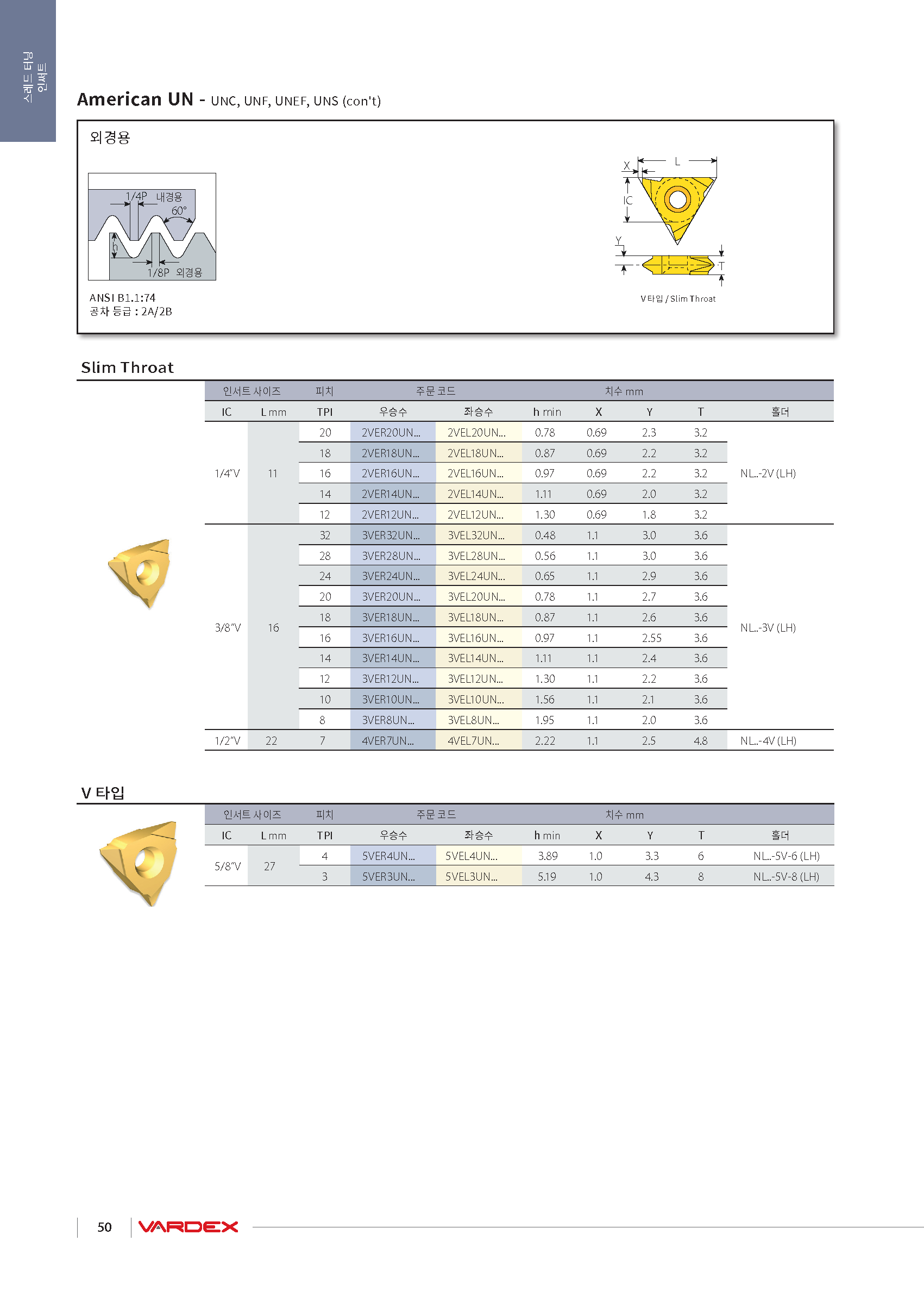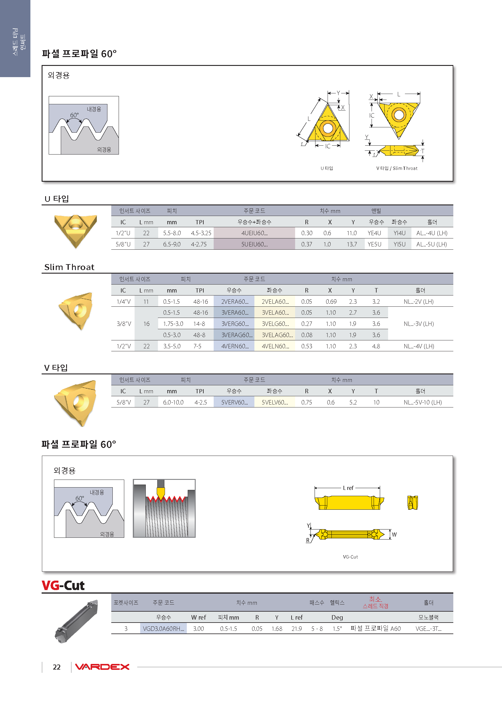 터닝 외경 나사 인써트(22VER, V-타입, 범용가공) |