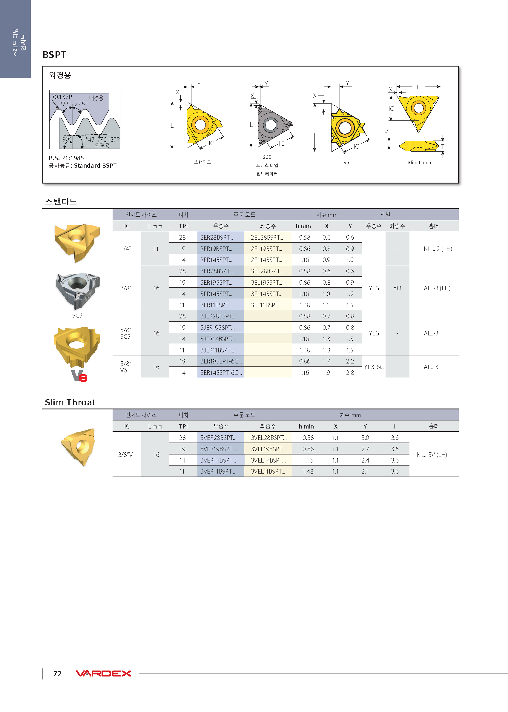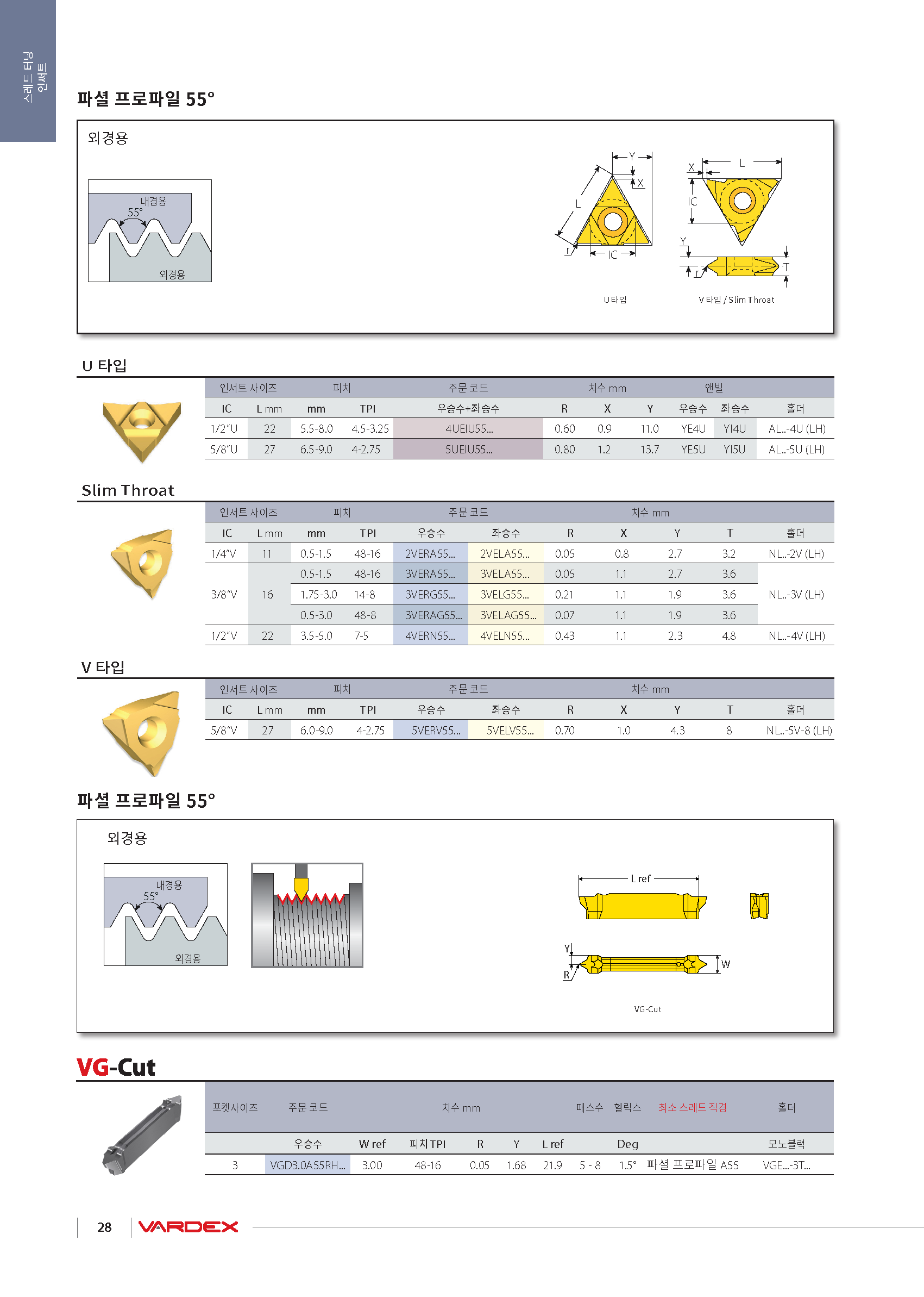 터닝 외경 나사 인써트(11VER, V-타입, 범용가공) |