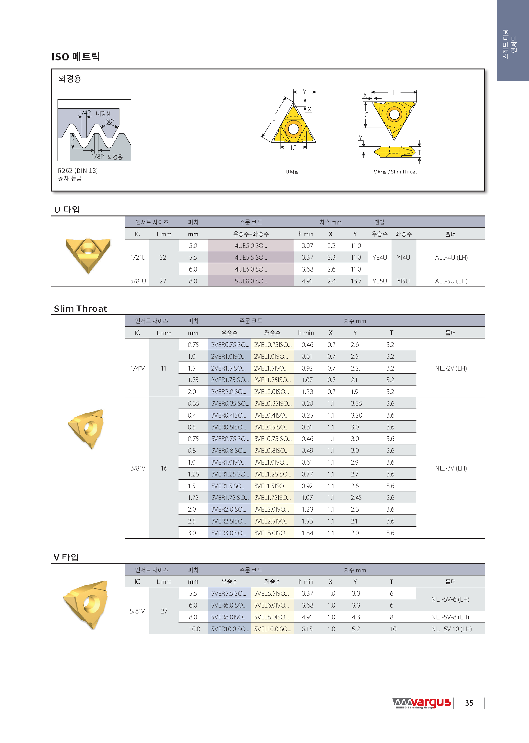 터닝 외경 나사 인써트(16VER, V-타입, 범용가공) |