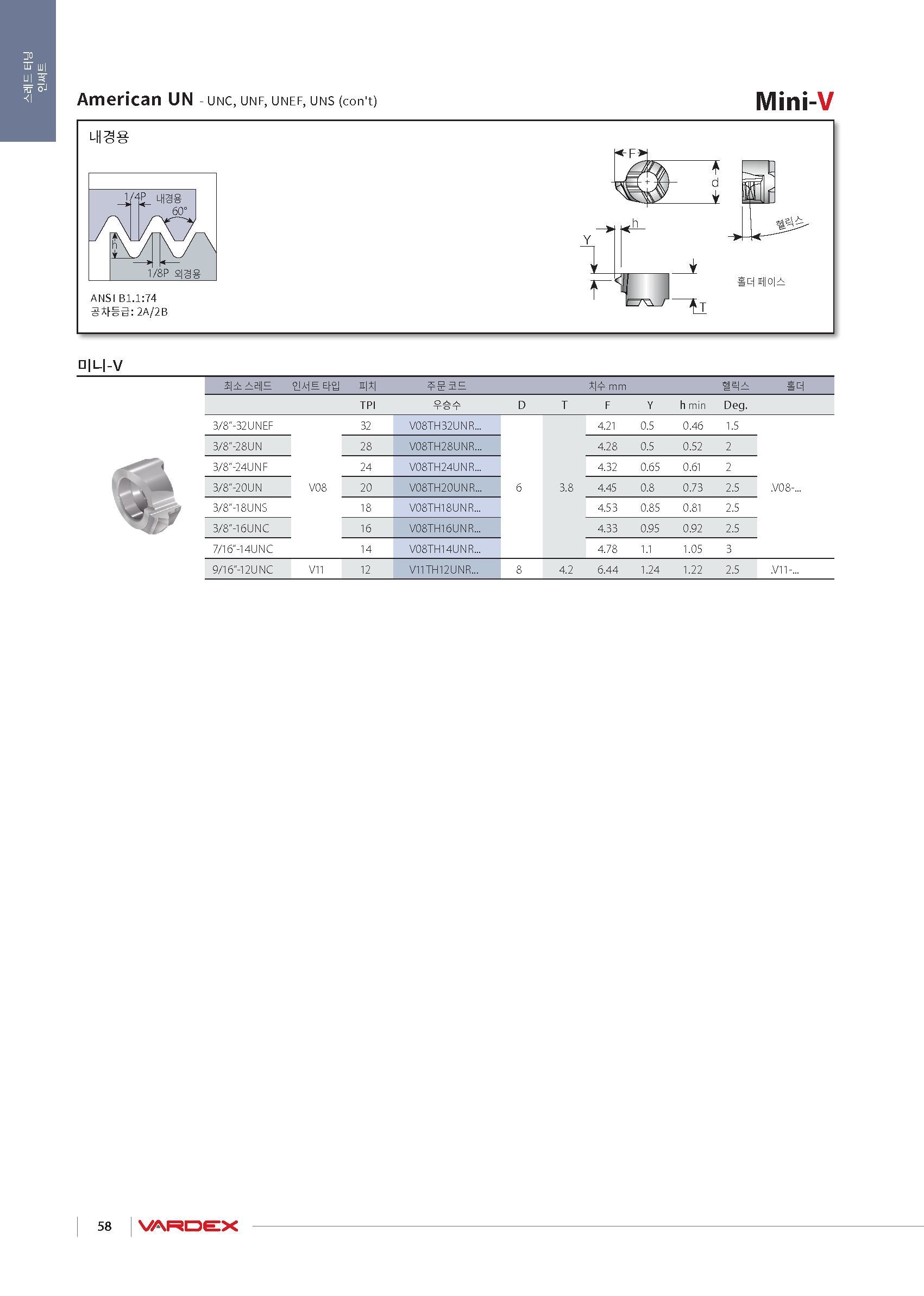• 상품명 Mini-V 나사 인써트 14UN/CVE08.VE08..