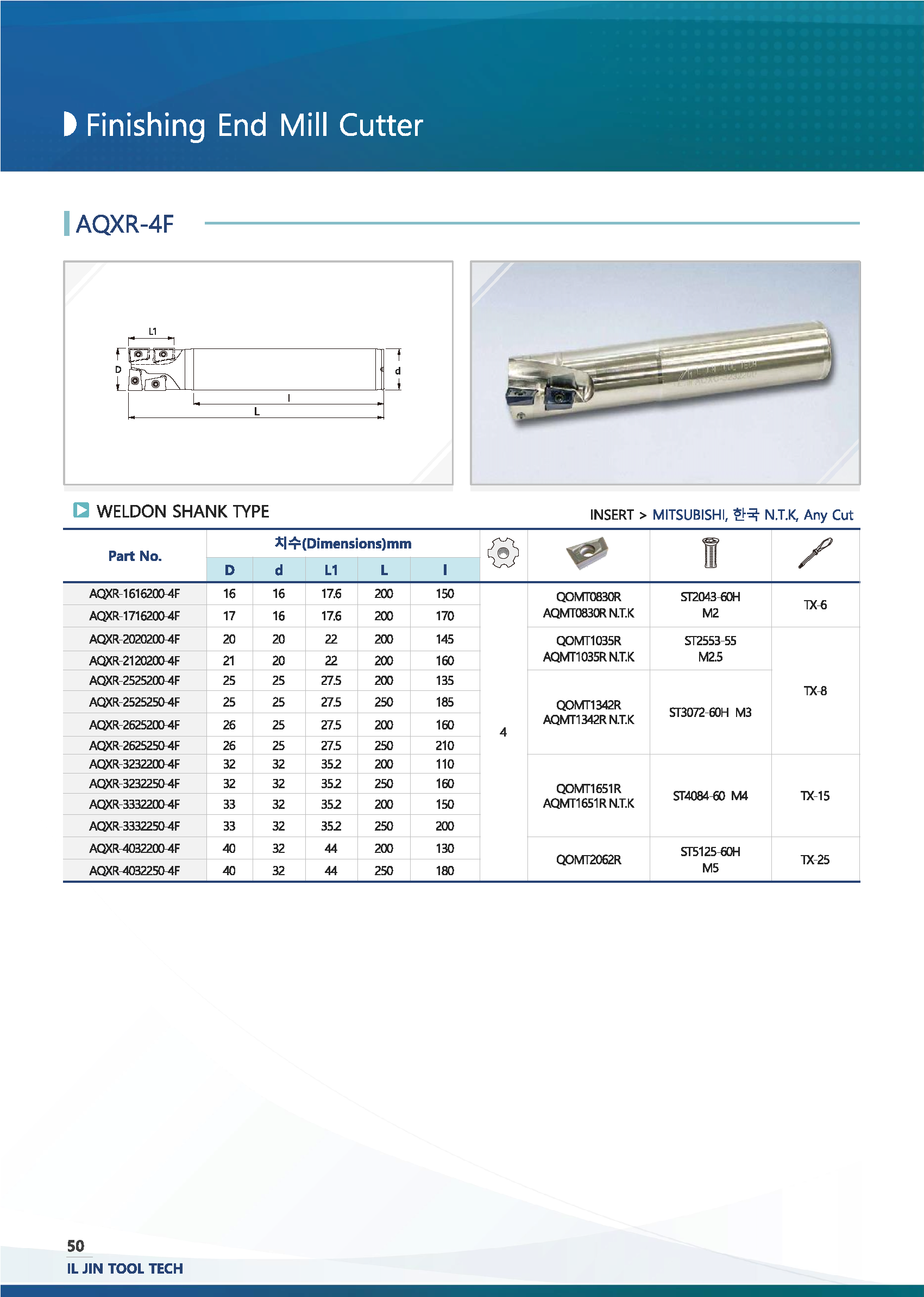 90°엔드밀 커터(2코너,다기능) AQXR-..-4F/ IL-JIN