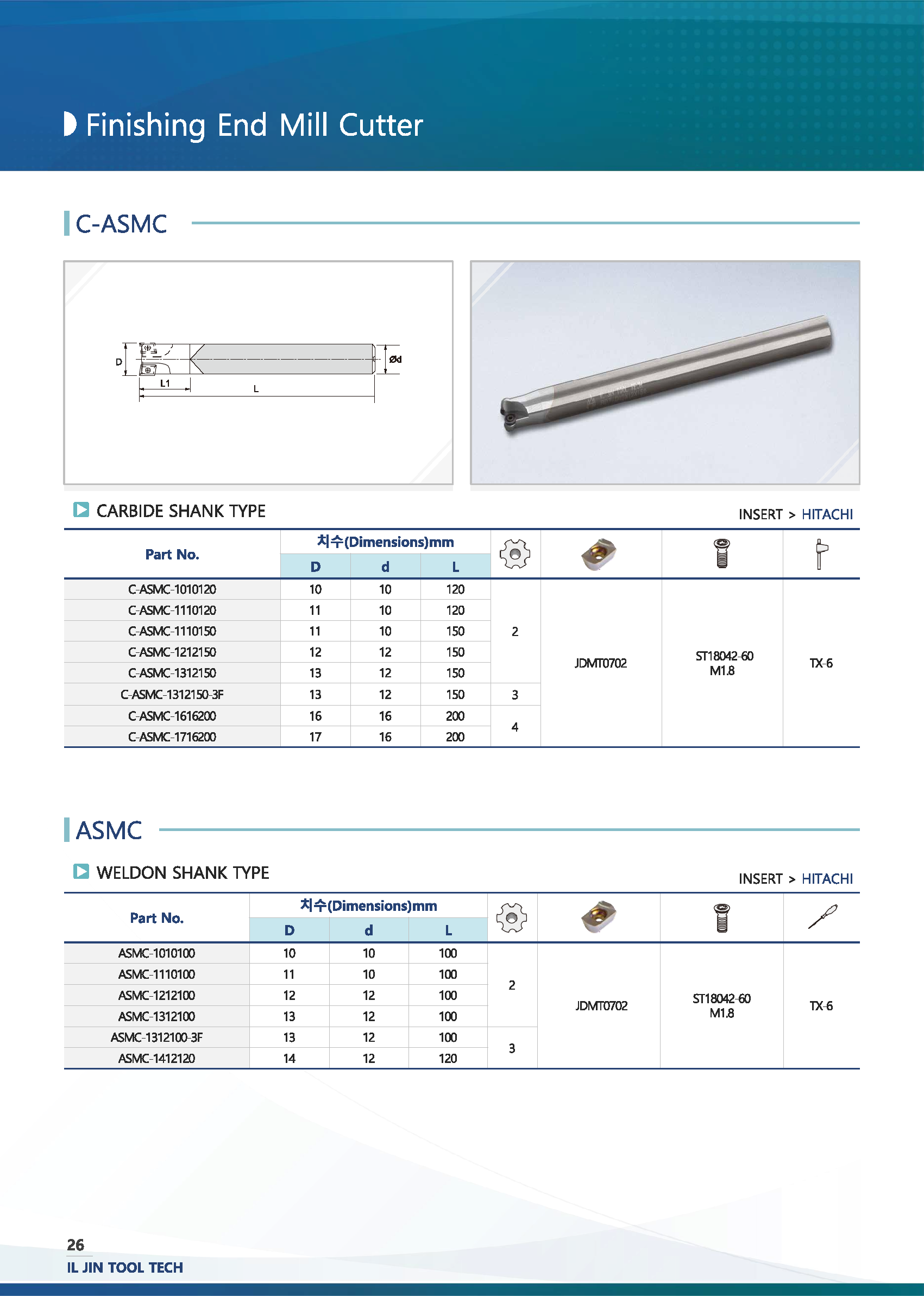 90°엔드밀 커터(2코너) ASMC-../ IL-JIN