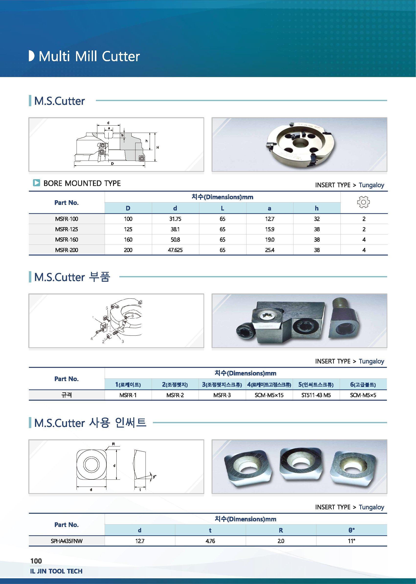 정삭 페이스밀 커터 MSFR../ IL-JIN