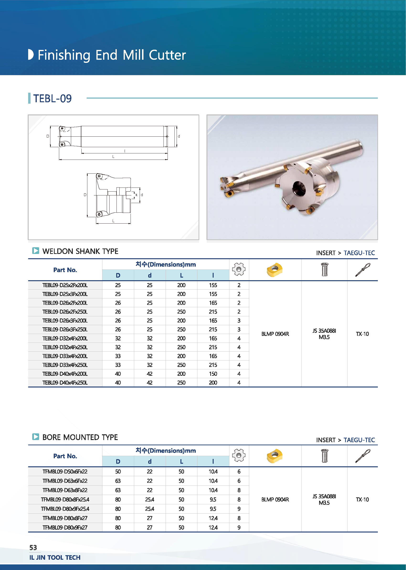 고이송 페이스밀 커터(대구텍 BLMP0904..) 7FxD50xd22 |