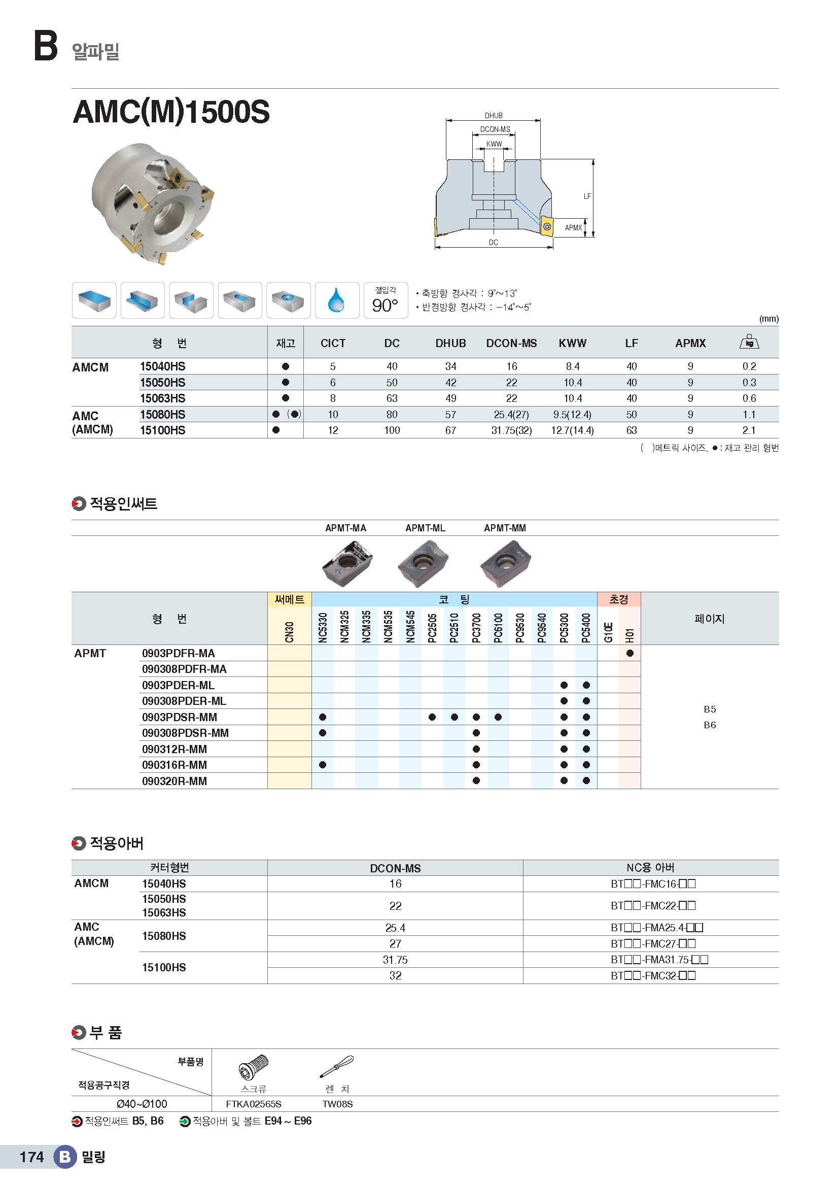 90°페이스밀 커터(2코너) AMC□15../ KR