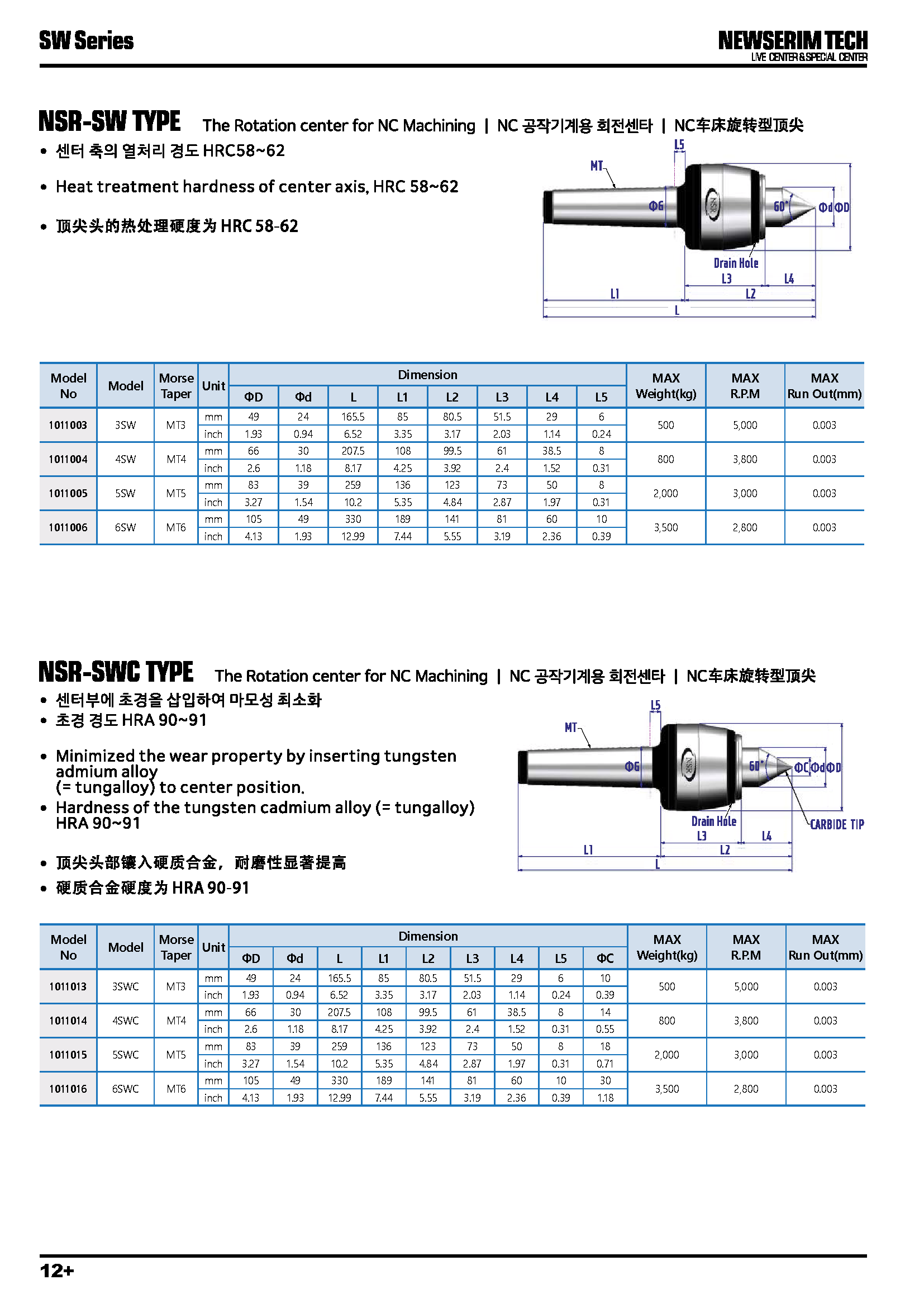 • 상품명 라이브 센터(NC용/드레인센터회전) MT4