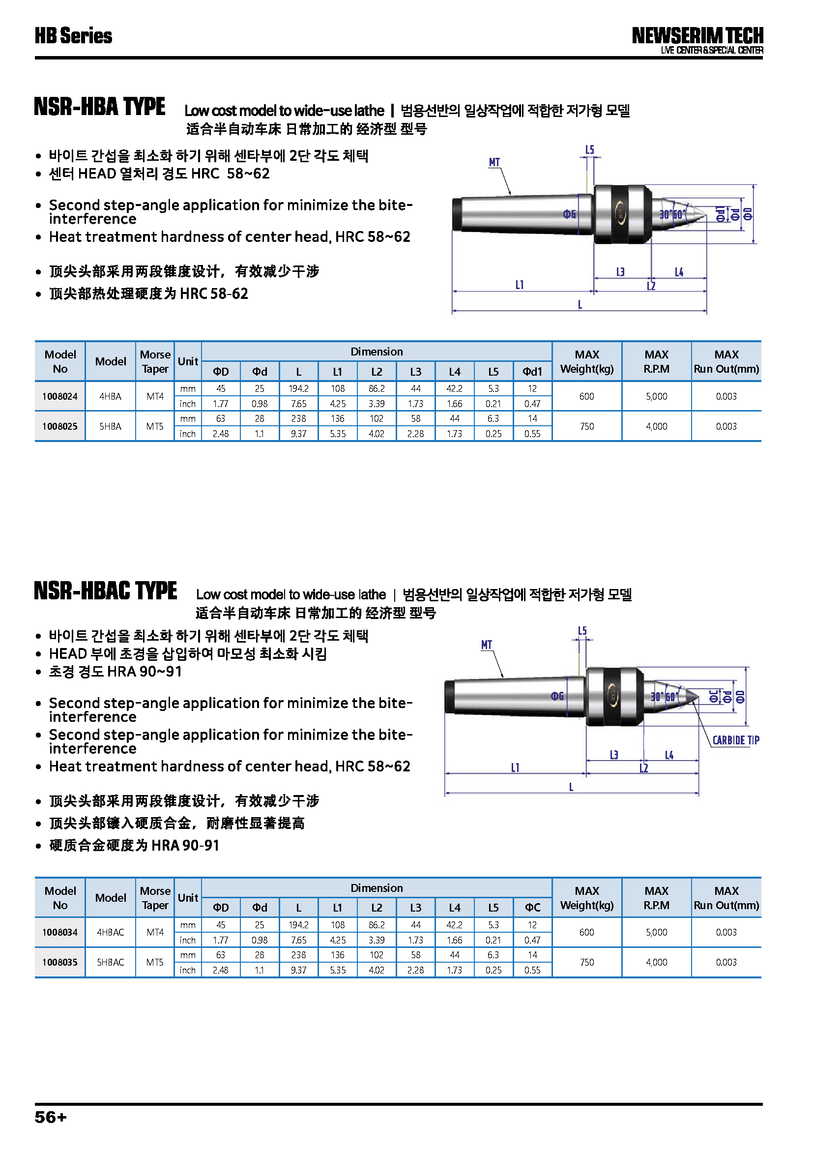 • 상품명 라이브 60/30°센터(범용선반용/헤드회전) MT4