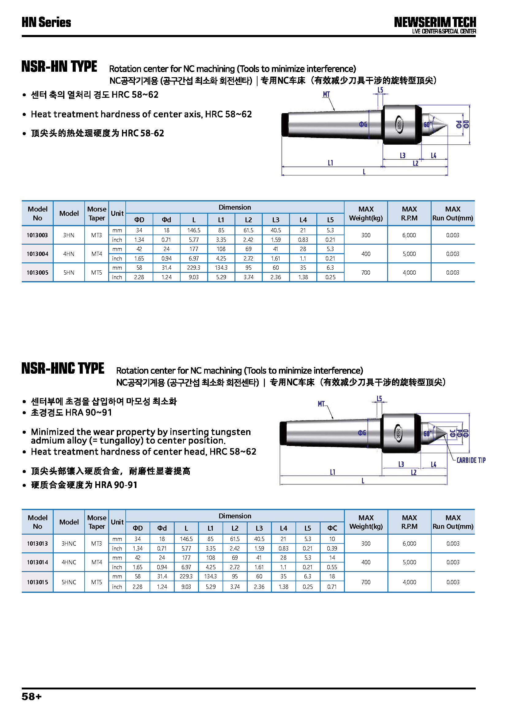 • 상품명 라이브 센터(NC용/공구간섭최소화&센터회전) MT4