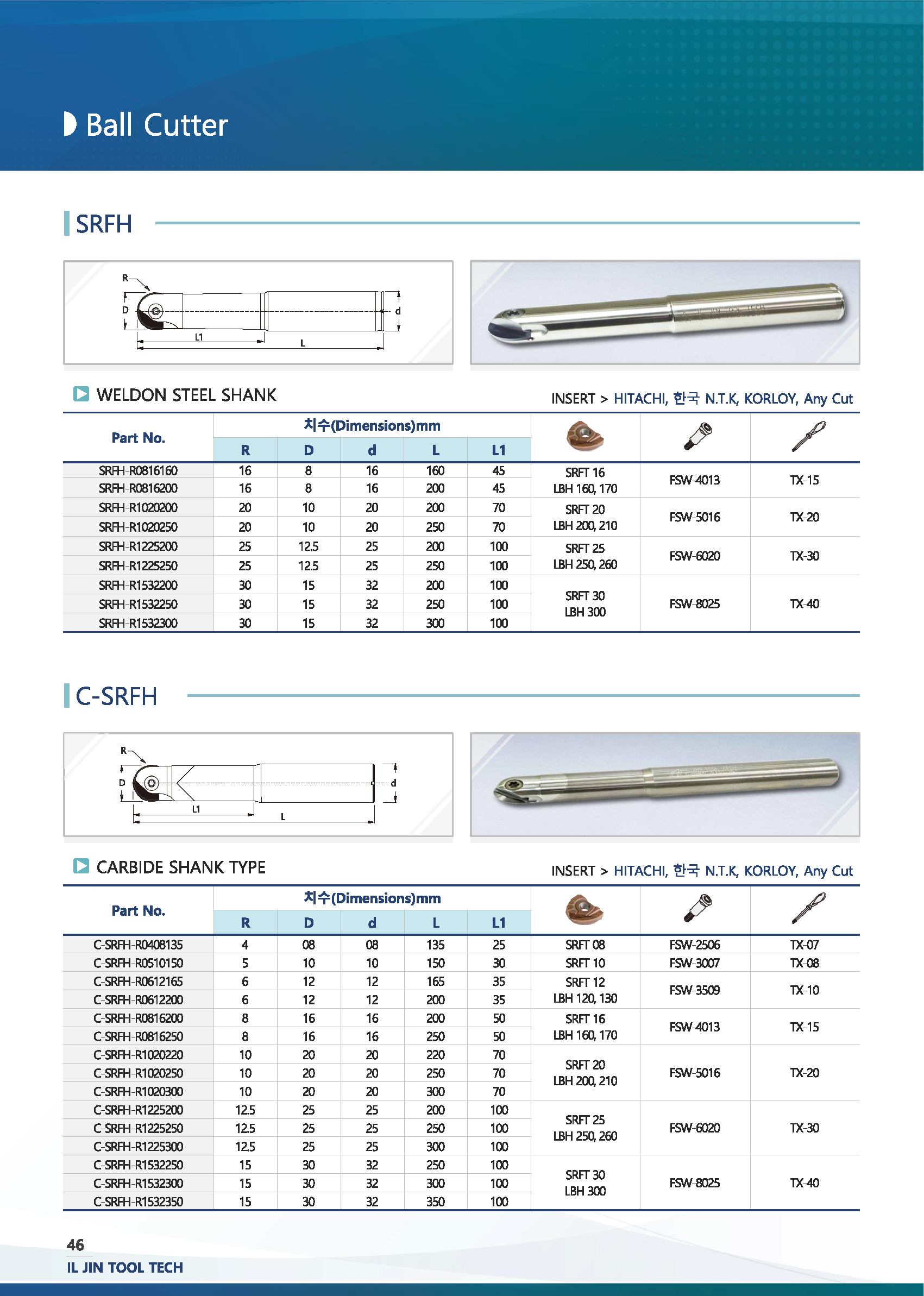 정삭 엔드밀 커터(초경) C-SRFH-R../ IL-JIN