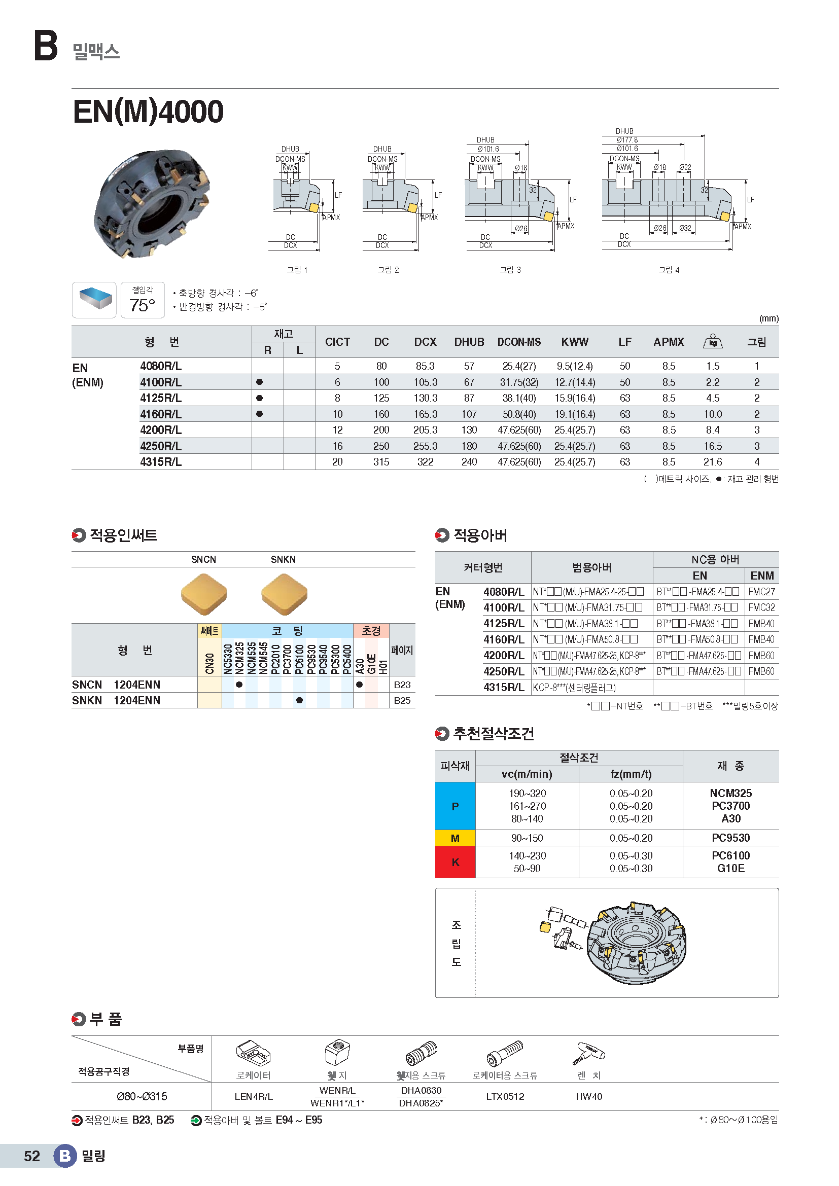 ISO 밀링 인써트(절입각 15°/0°) SN□N..ENN/ KR