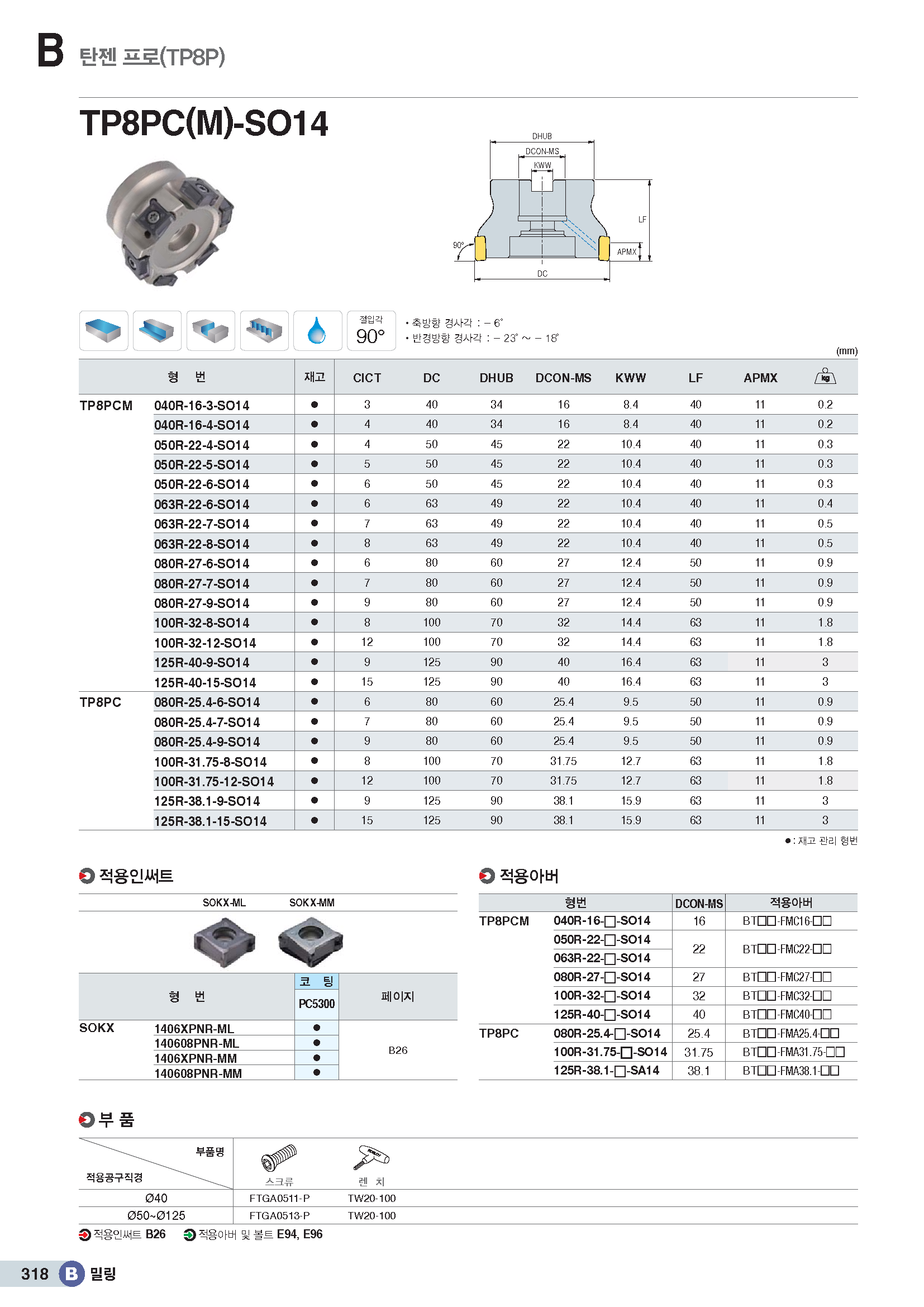 90°커터 인써트(8코너) SOKX1406../ KR