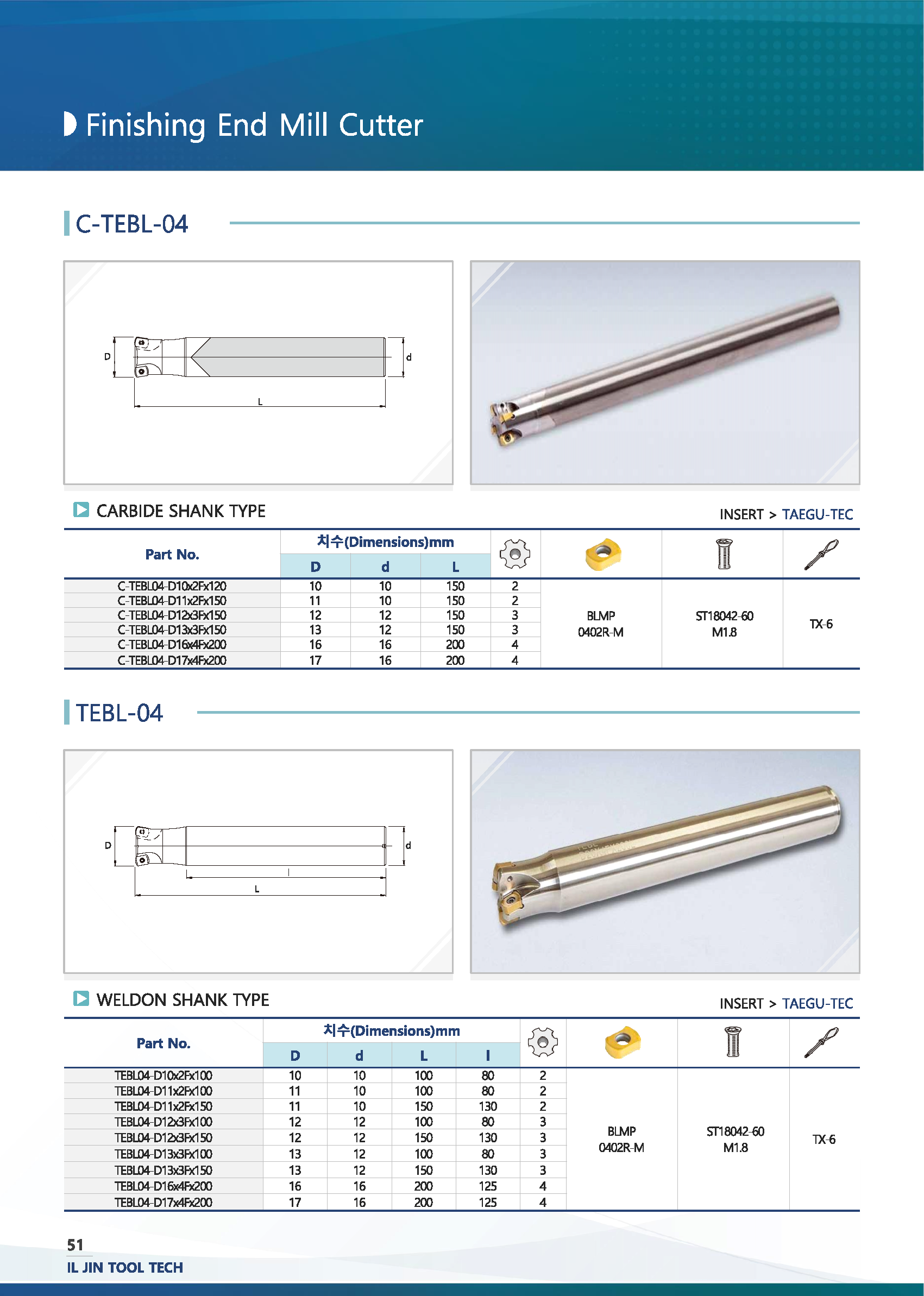 고이송 엔드밀 커터(4코너) TEBL04-D../ IL-JIN