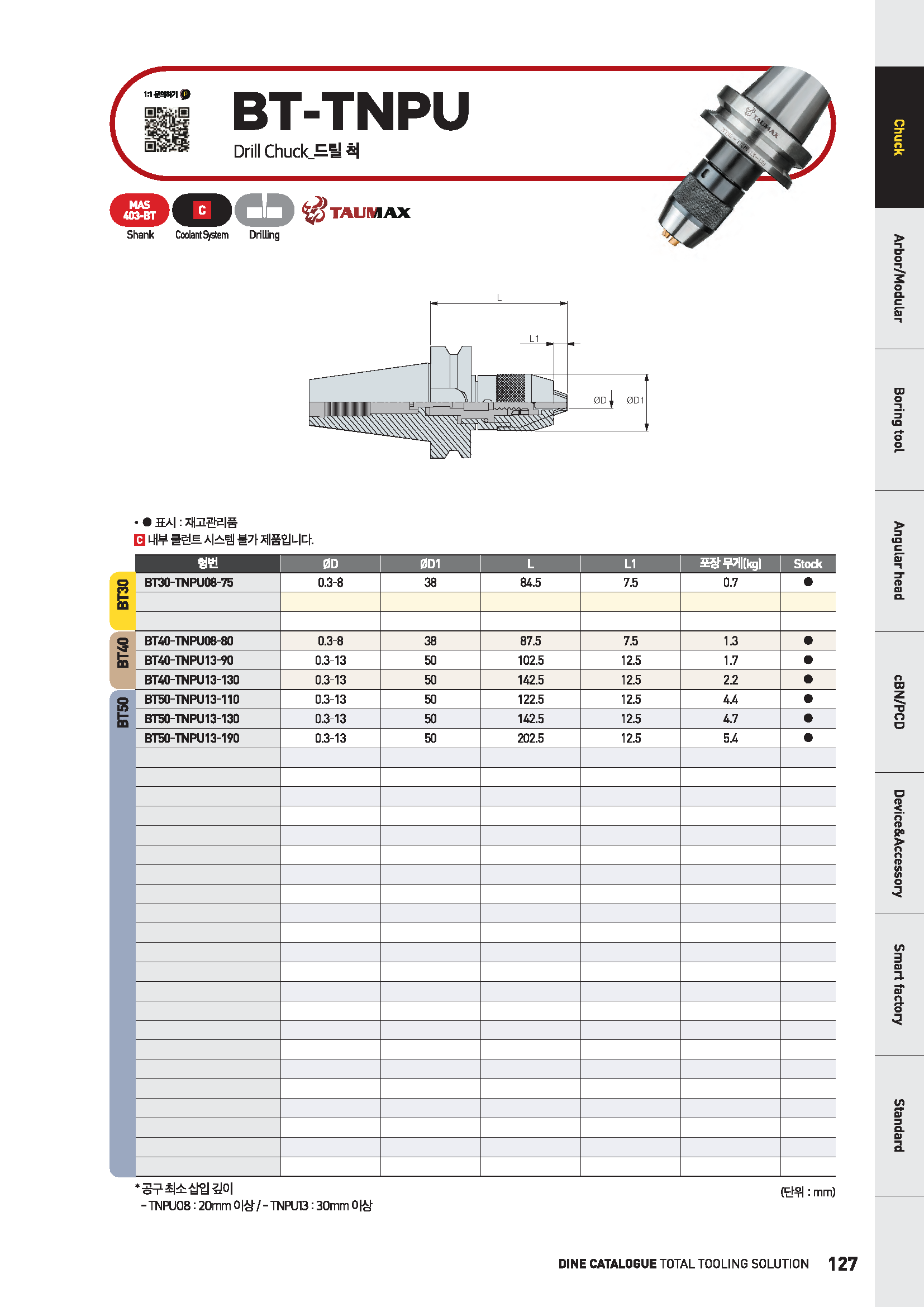 • 규격/옵션 BT40-TNPU13-90 [TAUMAX]